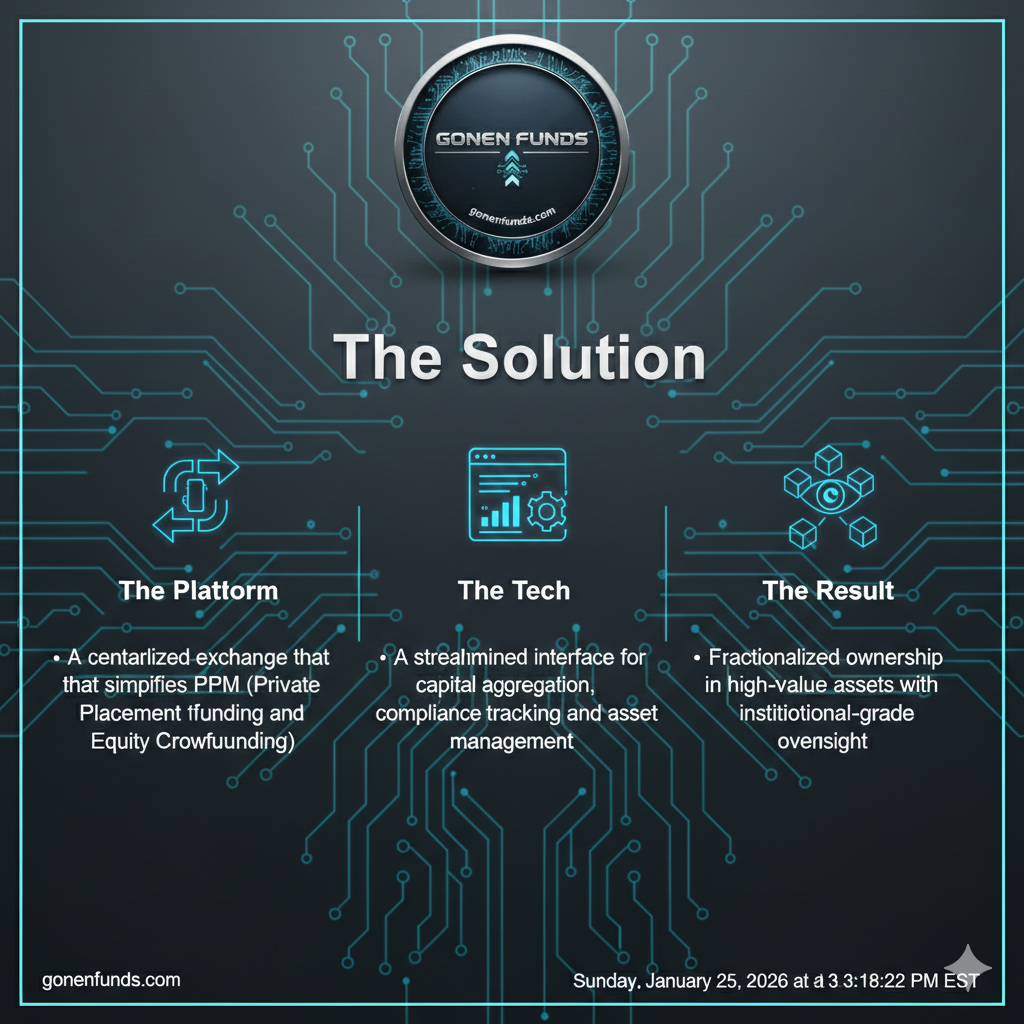 • The Platform: A centralized exchange that simplifies PPM (Private Placement Memorandum) funding and Equity Crowdfunding.