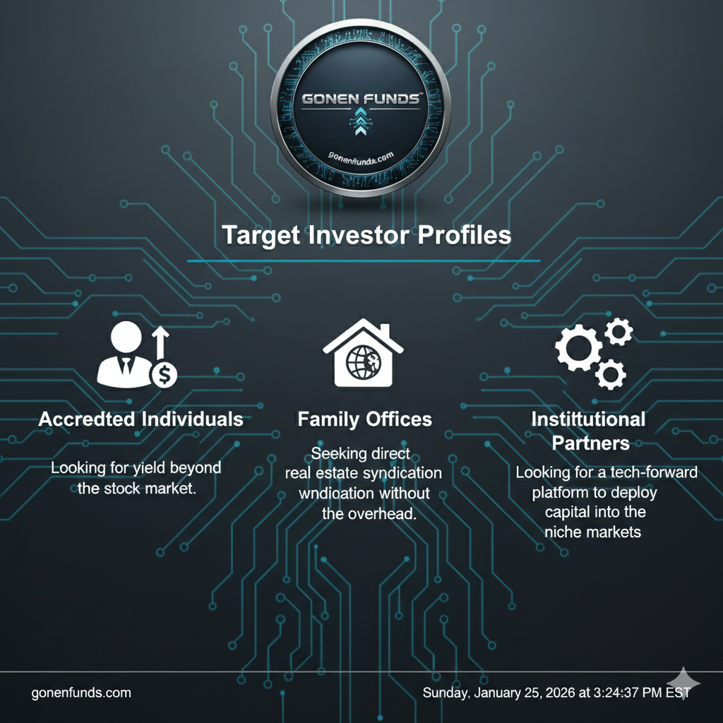 • Family Offices: Seeking direct real estate syndication without the overhead.